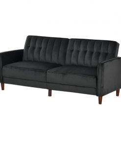 Mid-Century Modern Futon Sleeper Sofa Bed in Black Velvet Upholstery