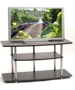 3-Tier Flat Screen TV Stand in Black Wood Grain / Stainless Steel