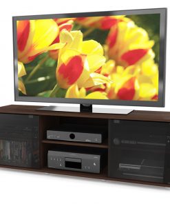 Contemporary Brown TV Stand with Glass Doors – Fits TV’s up to 64-inch