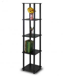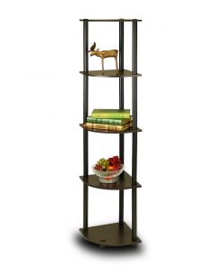 5-Tier Square Corner Display Shelf Bookcase in Espresso/Black