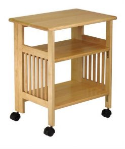 3-Shelf Folding Wood Printer Stand Cart in Natural with Lockable Casters
