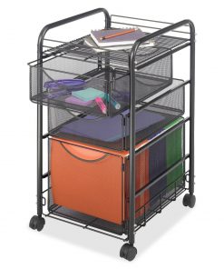 Black Metal Steel Mesh Mobile Filing Cabinet Cart with 2 Drawers and Wheels