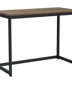 Small Home Office Modern Laptop Computer Desk Table Metal Frame Brown Wood Top