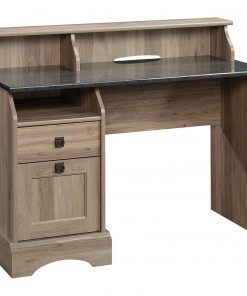 Rustic Oak Slat Top Computer Desk w/ Filing Cabinet