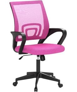 Pink Modern Mid-Back Ergonomic Mesh Office Desk Chair with Armrest on Wheels