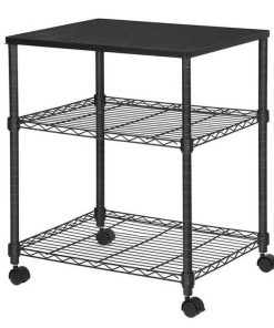 Sturdy Black Metal Wood Printer Stand Cart with 2-Shelves and Locking Casters