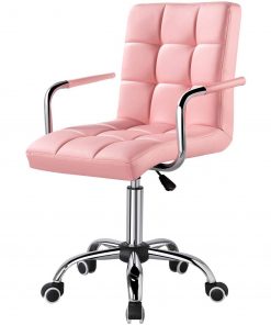 Pink Modern Faux Leather Mid-Back Swivel Office Chair with Armrests and Wheels
