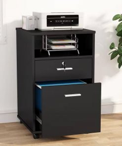 Black Rolling 2-Drawer Mobile File Cabinet Printer Stand Office Cart on Wheels