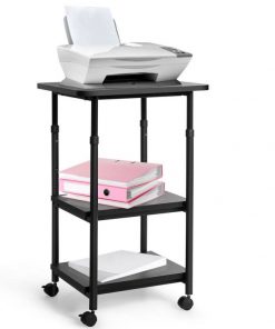 Black Multifunction Adjustable Height 3-tier Printer Stand on Wheels