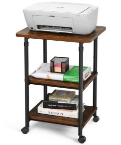 Brown/Black Multifunction Adjustable Height 3-tier Printer Stand on Wheels