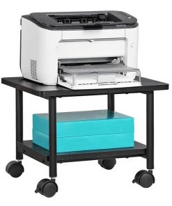 Industrial Black Metal Wood Low-Profile Printer Stand with Bottom Paper Shelf