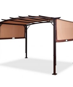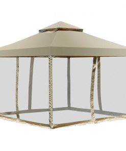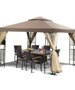 10 x 10 Ft Outdoor Patio Gazebo with Taupe Brown Canopy and Mesh Sidewalls