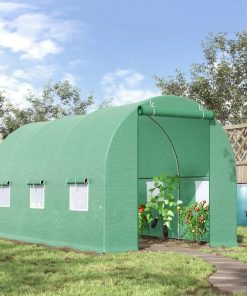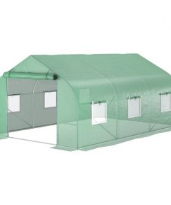 14.5 ft x 6.3 ft Outdoor Greenhouse with Green PE Cover and Sturdy Steel Frame