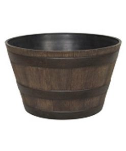 15-5-inch Round Whiskey Barrel Planter in Aged Walnut Finish Resin