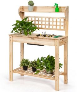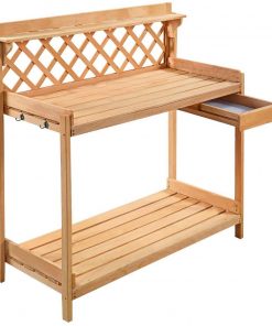 Solid Wood Garden Work Table Potting Bench in Natural Finish