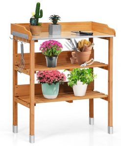 Solid Wood Garden Potting Bench Table with Bottom Shelf and Removeable Sink