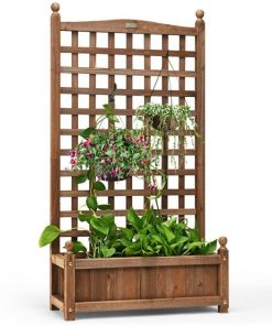 Solid Wood Farmhouse Garden Planter Box with 48-inch High Trellis
