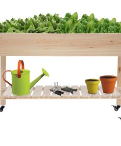 2ft x 4ft Outdoor Solid Fir Wood Raised Garden Bed Planter Box on Locking Wheels