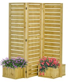3 Panel Fir Wood Outdoor Privacy Screen with 4 Garden Bed Planters
