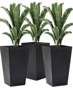 Set of 3 – Black Faux Rattan Plastic Tall Large Flower Pots
