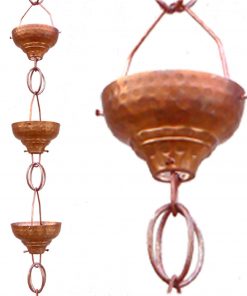 Hammered Copper Cups 8.5-Feet Rain Chain Rain Gutter Downspout Alternative