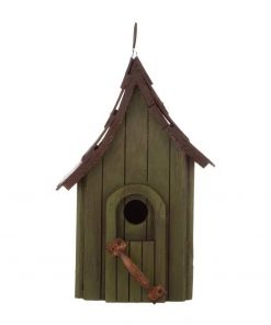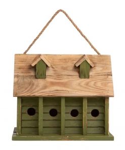 Green Wood Garden Bird House with 1 Compartment and 4 Holes