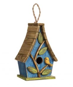 Farmhouse Solid Wood Hanging Birdhouse in Blue Green Yellow Brown