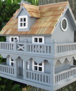 Light Blue Wooden Cottage Bird House with Removeable Back