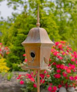 Cast Iron Metal Birdhouse with Pole and Stake in Copper Finish