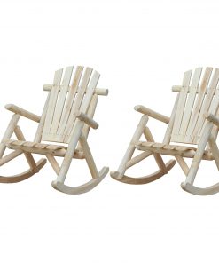 FarmHouse Classical Fir Wood Rocking Adirondack Chair Natural – Set of 2