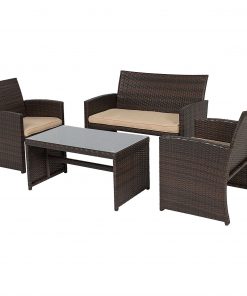 Brown Resin Wicker 4-Piece Modern Patio Furniture Set with Beige Cushions