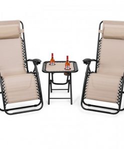 3 Piece Folding Portable Reclining Lounge Chairs Table Set Tan