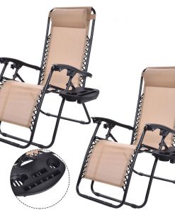 Set of 2 Beige Folding Outdoor Zero Gravity Lounge Chair Recliner