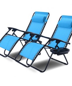 Set of 2 Blue Folding Outdoor Zero Gravity Lounge Chair Recliner