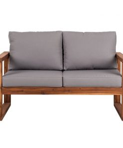 FarmHouse Modern Outdoor Acacia Loveseat with Grey Cushion
