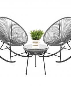 3 Piece Grey Oval Patio Woven Rocking Chair Bistro Set