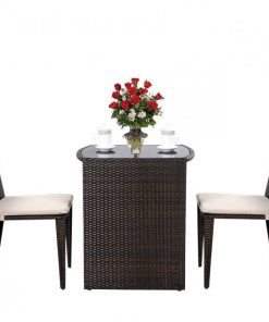 3 Piece Compact Espresso/White Wicker Patio Cushioned Outdoor Chair Table Set