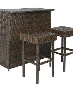 Outdoor 3-Piece PE Wicker Bar Set with Table and Stools
