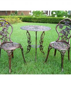 3-Piece Outdoor Bistro Set with Rose Design in Antique Bronze Finish