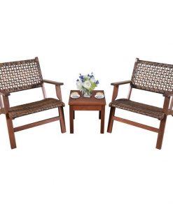 3 Piece Wooden Rattan Outdoor Patio Furniture Chair Table Bistro Set
