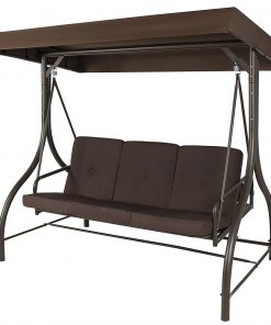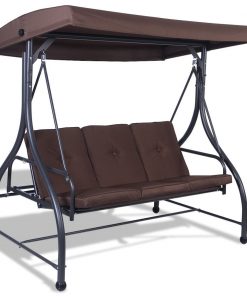 Brown Adjustable 3 Seat Cushioned Porch Patio Canopy Swing Chair