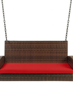 Brown Wicker Hanging Patio Porch Swing Bench w/ Mounting Chains and Red Seat Cushion