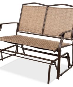 2 Seater Mesh Patio Loveseat Swing Glider Rocker with Armrests in Brown