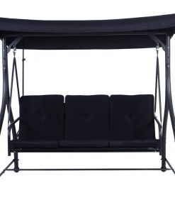 Black Adjustable 3 Seat Cushioned Porch Patio Canopy Swing Chair