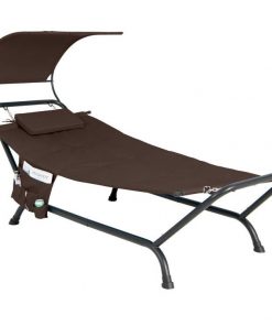 Brown Outdoor Hammock Style Chaise Lounge Chair Cot with Canopy and Storage Bag