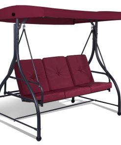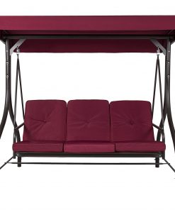 Dark Red Burgundy 3 Seat Cushioned Porch Patio Canopy Swing Chair