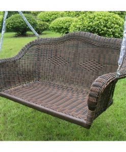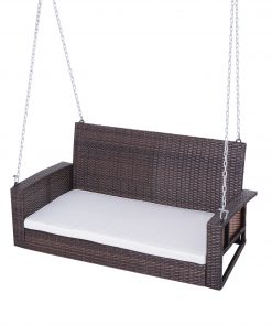 Espresso Wicker Porch Swing 7ft Hanging Chain with Cream Padded Cushion