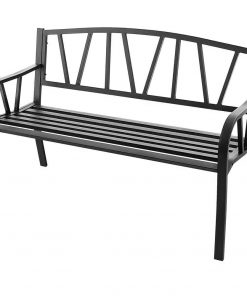 Black Metal 2-Person Outdoor Garden Bench with Armrest – 660 lbs. Max Weight