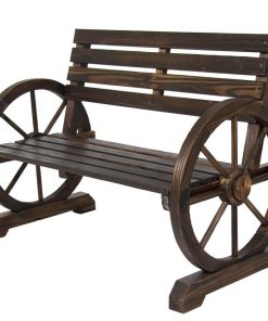 2 Person Farmhouse Wagon Wheel Wooden Bench