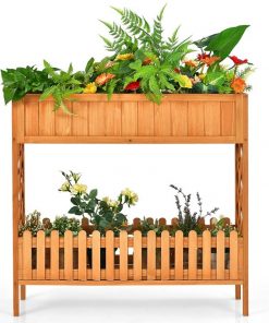 2 Tier Raised Garden Bed Elevated Fir Wood Planter Box